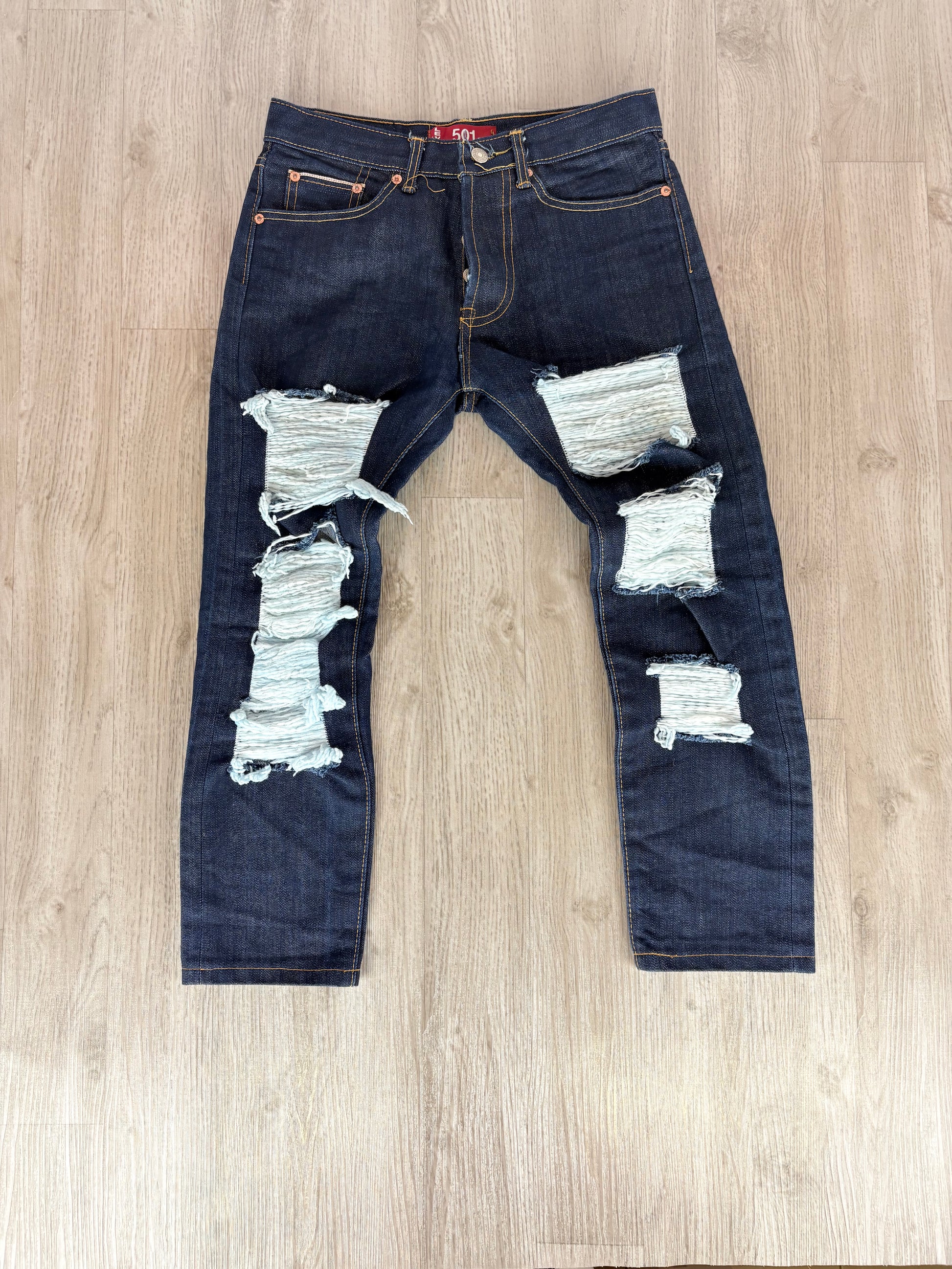 LEVI’S 501 BIG E DISTRESSED JEANS DENIM SCURO W29 L32